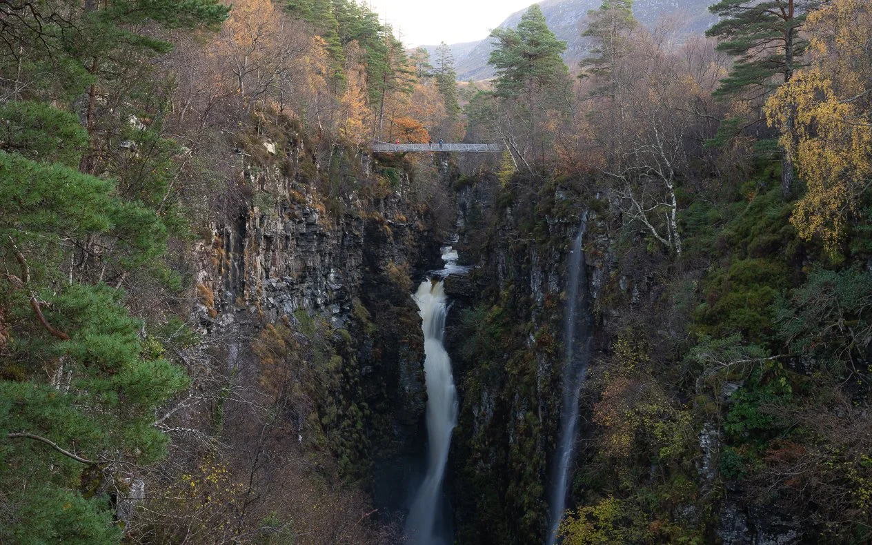 Corrieshalloch Gorge is just a short drive from Ullapool, and it’s one of those places that makes your jaw drop when you see it. The gorge is deep, dramatic, and comes with a stunning waterfall, the Falls of Measach. There’s a suspension bridge you can walk across, which gives you a thrilling (but totally safe!) view straight down into the gorge. It’s a quick stop, but the natural beauty here is off the charts.