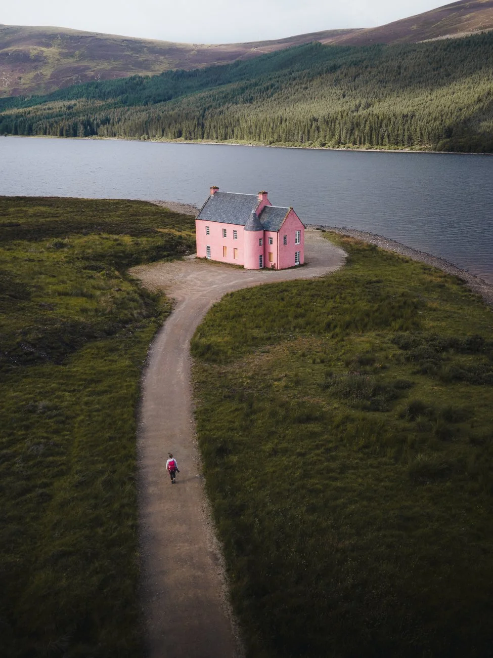 Discover this abandoned yet charming fairytale house situated in a rugged and untamed area of the Scottish Highlands on the shores of Loch Glass. Located just 26 miles from Inverness, this pink house became one of the most instagrammable buildings in Scotland. The house is empty and the windows aren't real. Instead they are boards with windows painted on to them. For some it might be underwhelming as the house is only a shell but photographers will have a great time here.